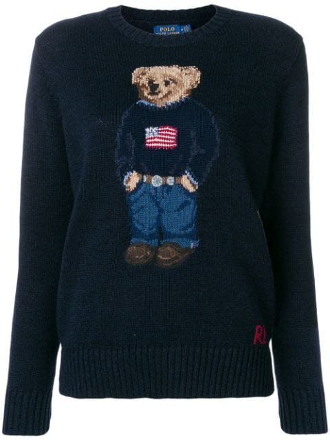 Ralph Laurens Kult-Bär erfreut sich seither ungebrochener Beliebtheit. Hey guys I hope youve had a great week can you believe that its December already. On this 50th anniversary pullover our beloved mascot dons loafers jeans a concho belt and our iconic American flag sweater.