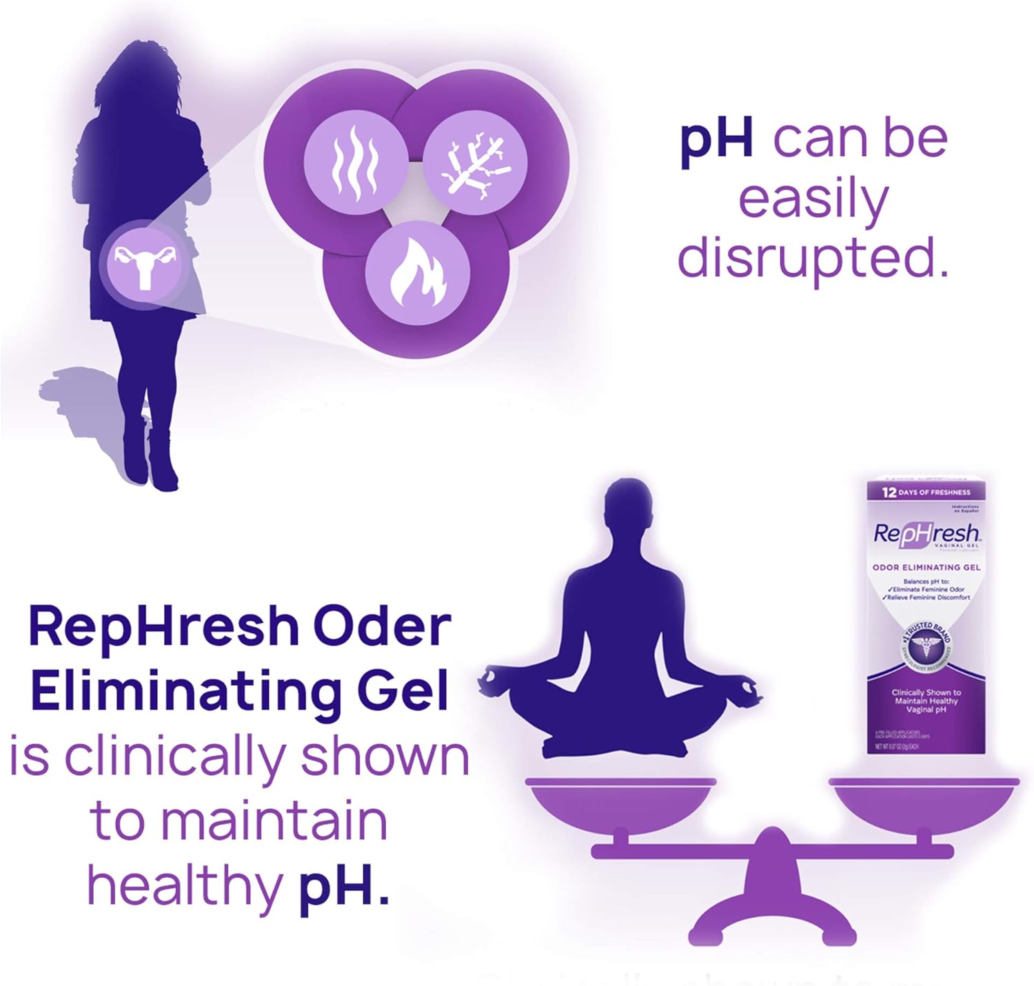 I started using Rephresh to restore the pH balance. Symptoms often include an excessive grayish white vaginal discharge and a bothersome fishy odor which can be worse after sexual intercourse. RepHresh is an over-the-counter product that maintains vaginal pH.