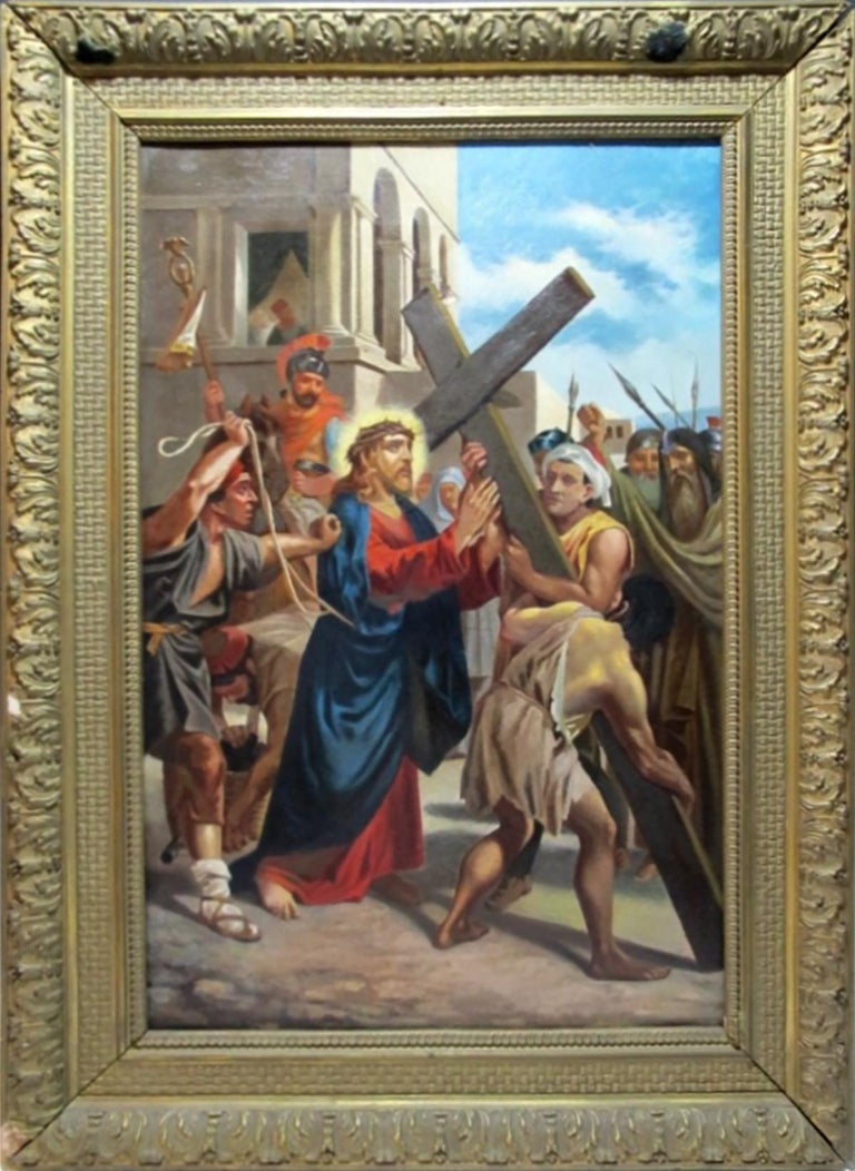 Unknown 18th C Continental Figural Oil Painting Christ Carrying The Cross For Sale At 1stdibs