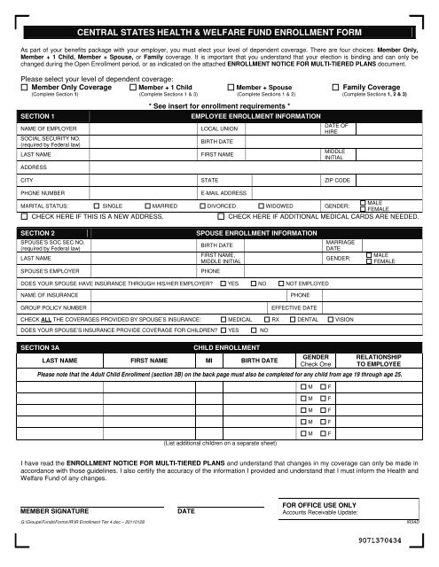 Central States Health Welfare Fund Enrollment Form