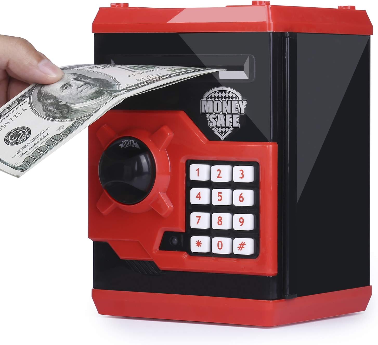 Amazon Com Suliper Electronic Piggy Bank Code Lock For Kids Baby Toy Mini Atm Safe Coin Cash Banks Real Money Saving Box With Password Auto Money Scroll For Children Boys Girls Birthday Gift Black Red