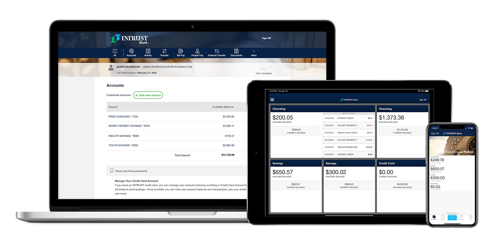 Providing innovate banking services for you and your business since 1876. View Accounts View your INTRUST checking savings time deposit and loan accounts in one central location. Top-rated mobile banking app.